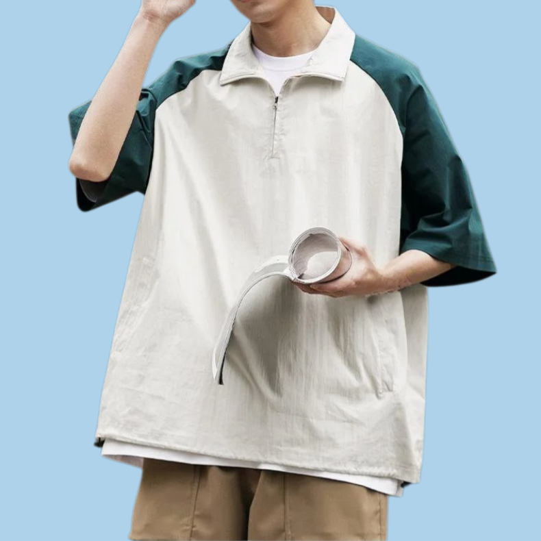 Men’s summer loose fitting shoulder sleeves with patchwork short sleeves offer breathable comfort, modern design, and versatile style for daily wear or casual outings.